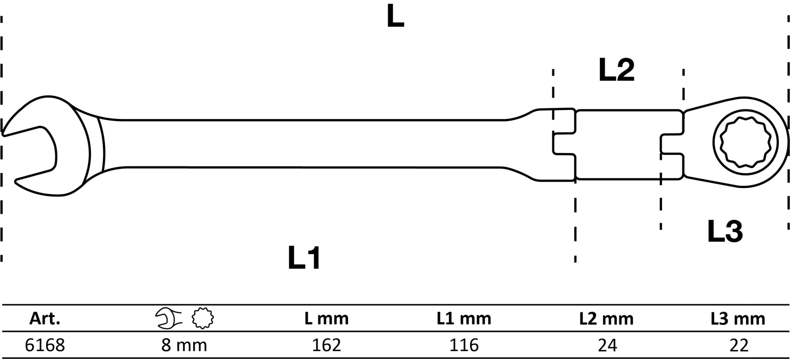 Clés mixtes à cliquet à double articulation | pliable | 8 mm