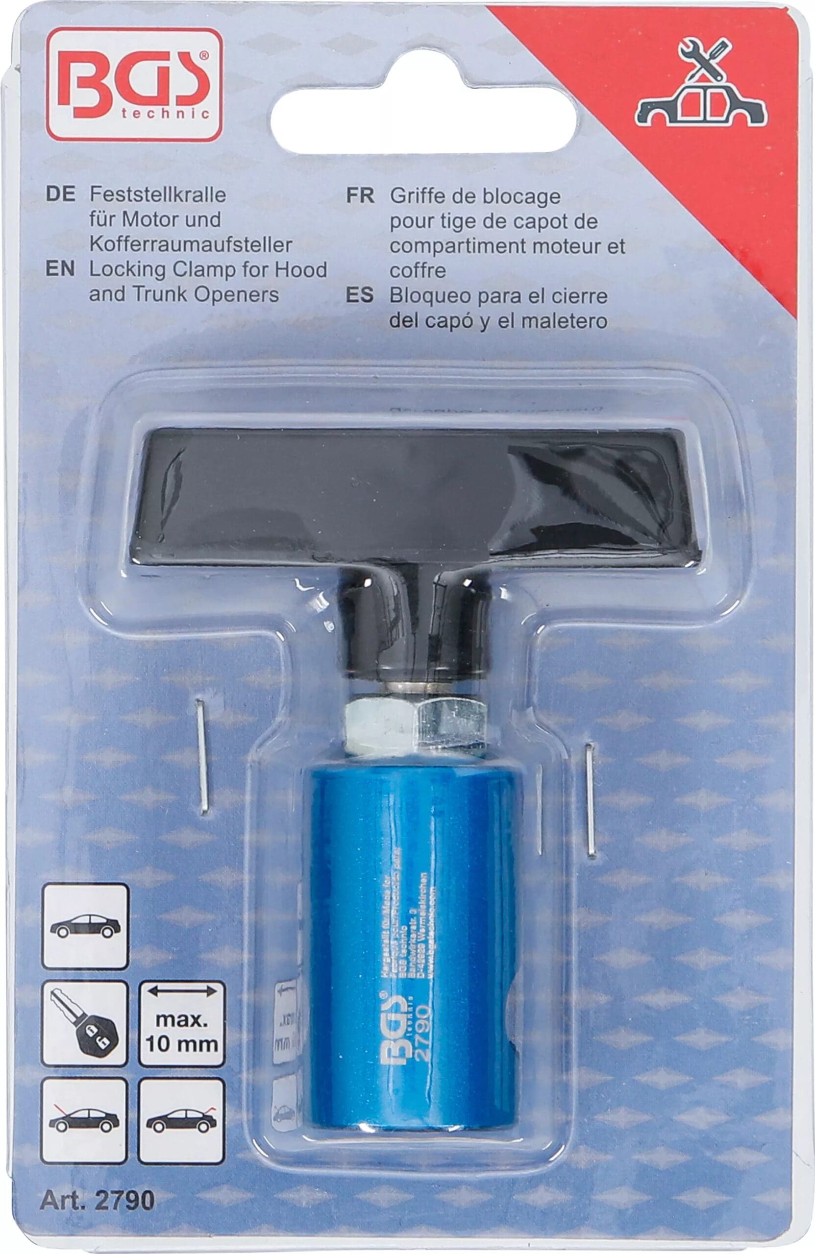 BGS technic <br/>Griffe de blocage pour tige de capot de compartiment moteur et coffre