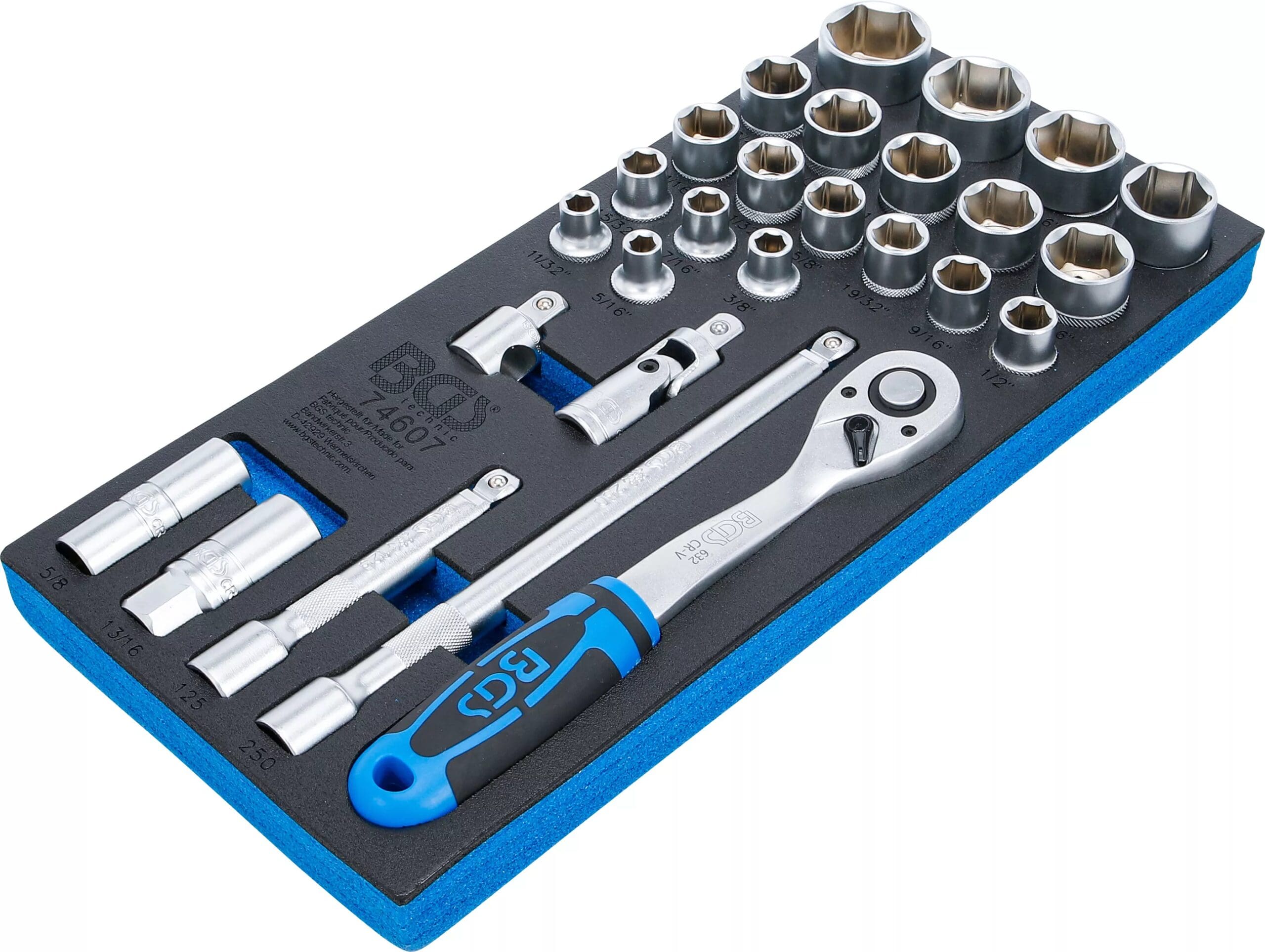 Insert de servante d’atelier 1/3 : Jeu de clé à douilles | en pouce | 12,5 mm (1/2) | 27 pièces