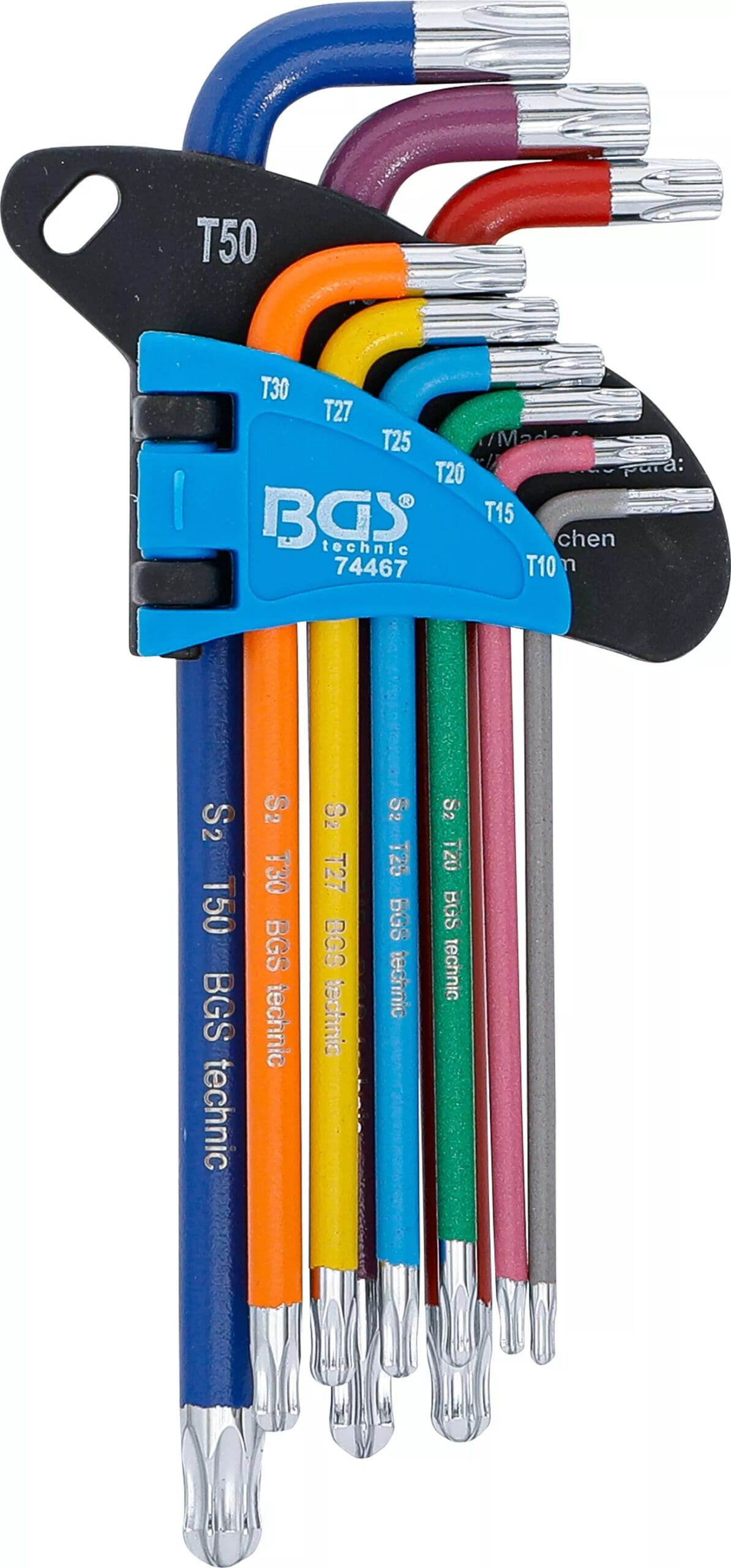 Jeu de clés allen | multicolore | Profil T (pour Torx) avec tête sphérique T10 - T50 | 9 pièces