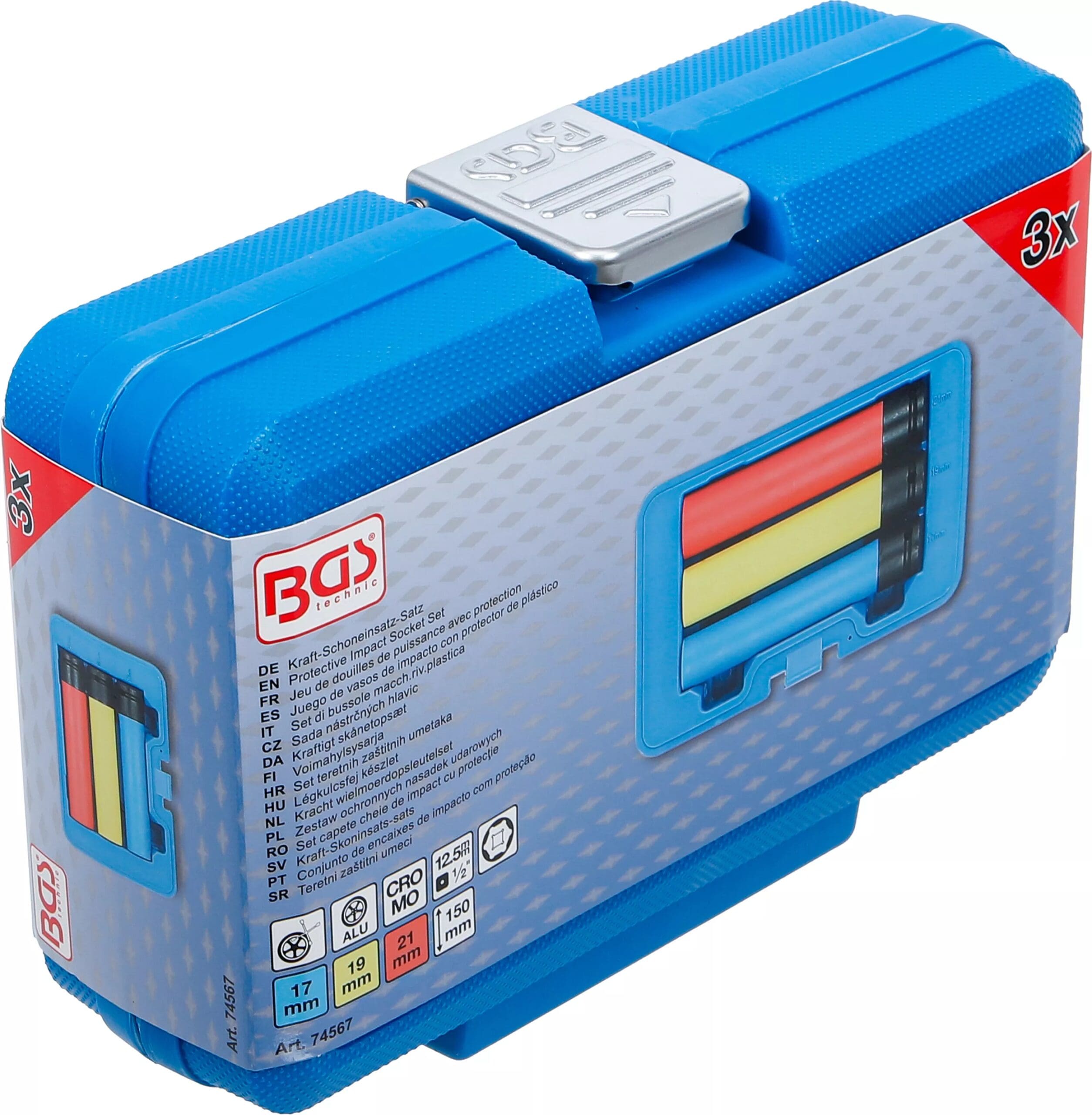 Jeu de douilles de puissance avec protection | extra longue | 12,5 mm (1/2″) | 17 / 19 / 21 mm | 3 pièces