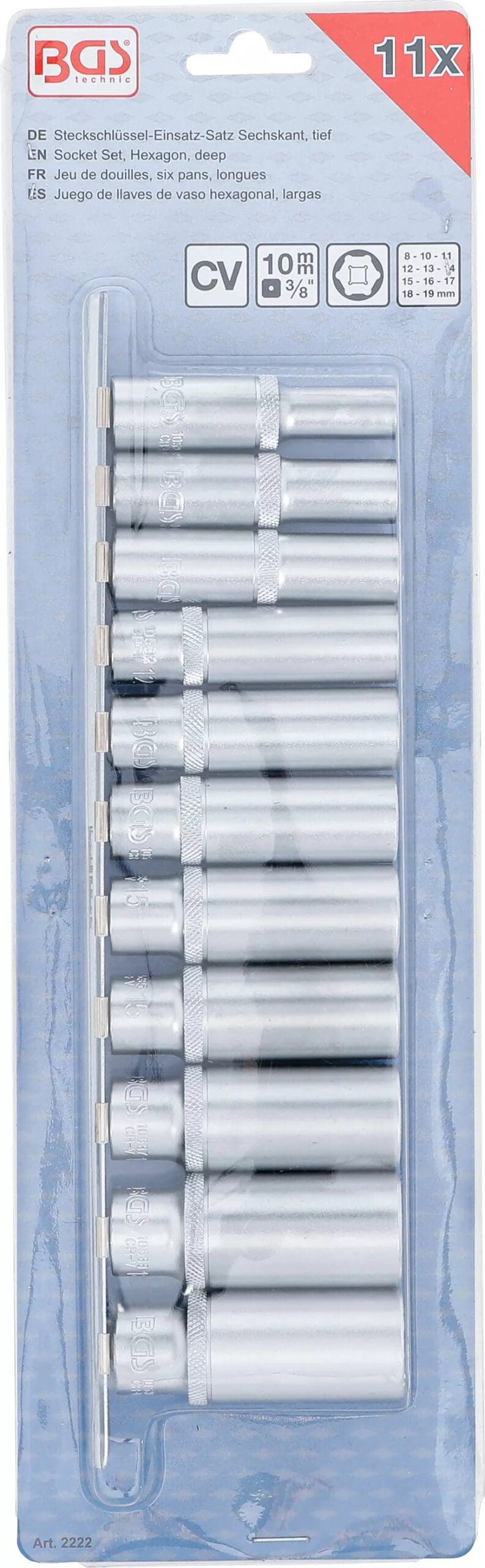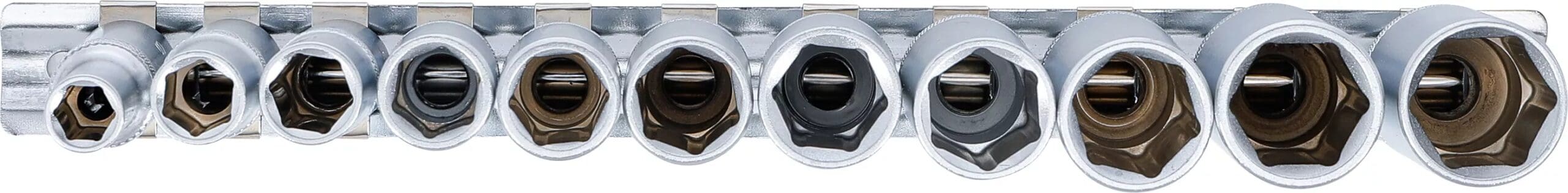 Jeu de douilles, six pans, longues | 10 mm (3/8″) | 8 – 19 mm | 11 pièces