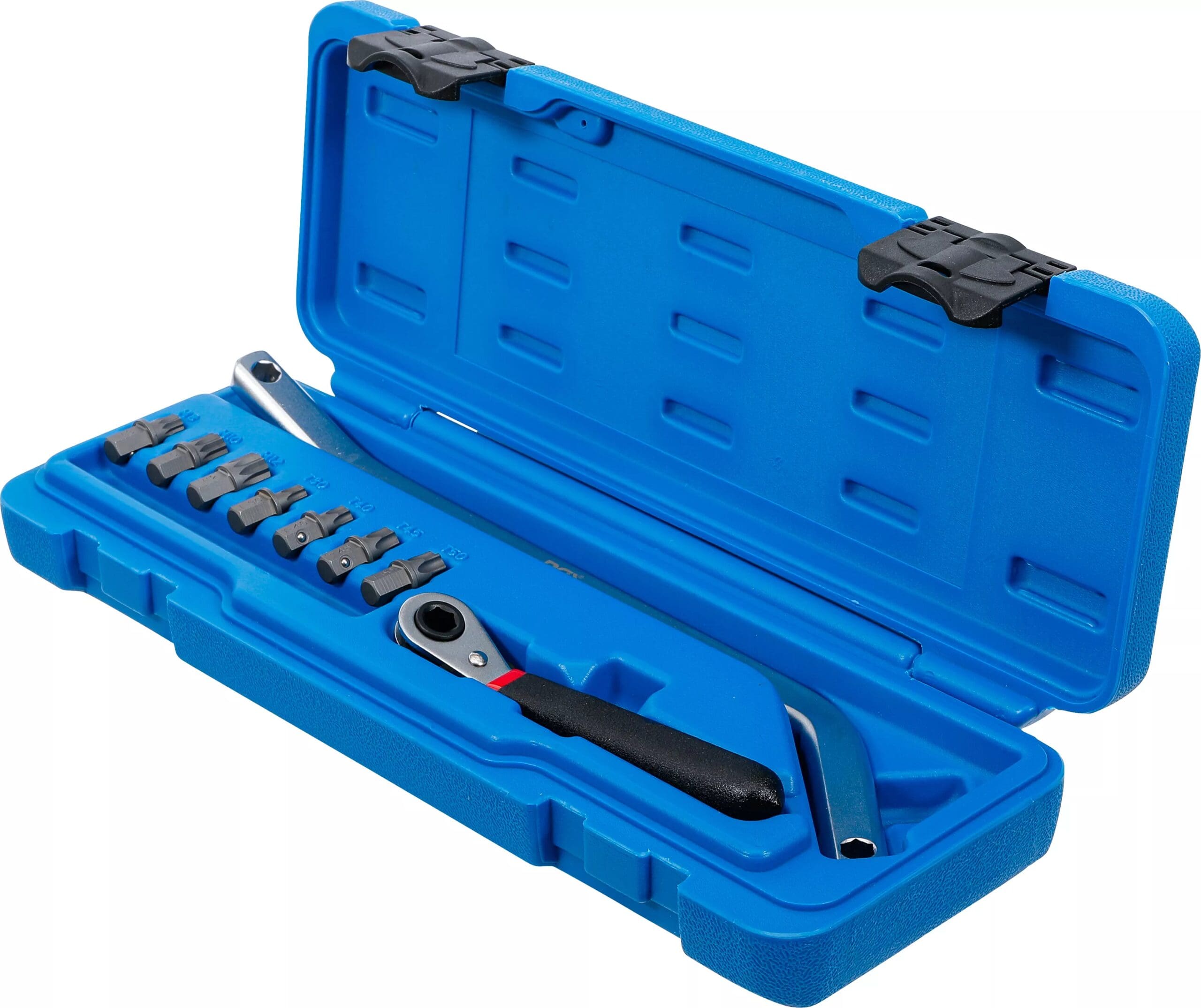 - Contient les embouts avec billes de retenue suivants pour vis à denture multiple interne M8, M10 et M12 ainsi que des vis à profil T T30, T40, T45 et T50
